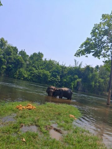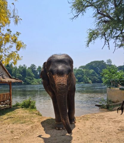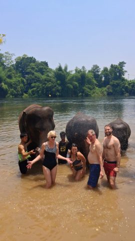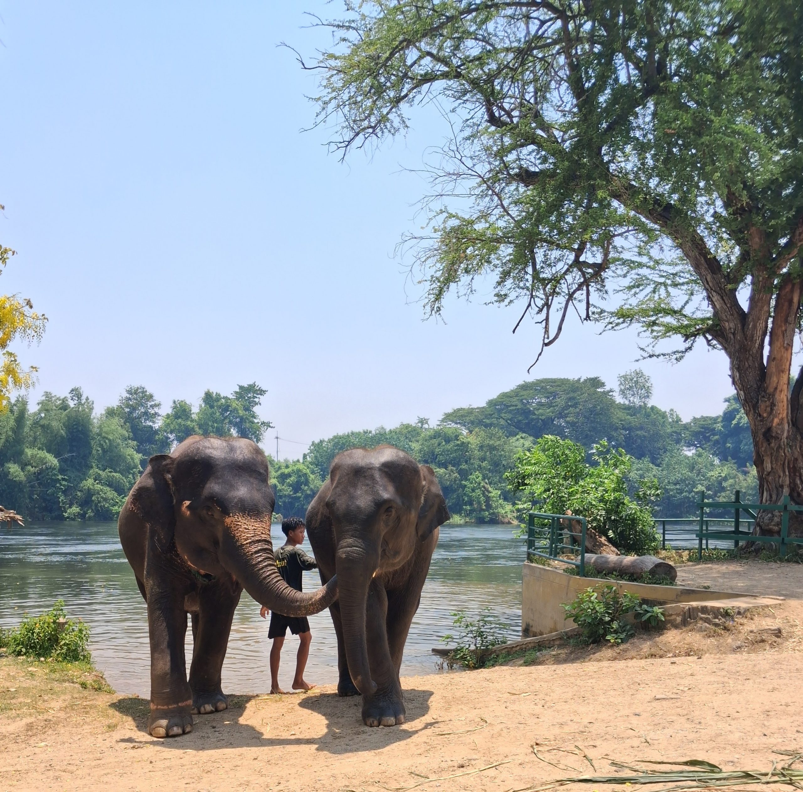 We spent our first Songkran out of Bangkok and came for a family holiday to Kanchanaburi to see the River Kwai Bridge and hang out with the elephants at a sanctuary before taking the train back home.